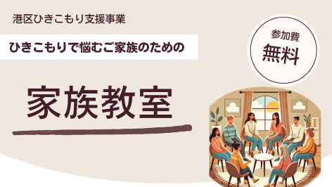 家族として、できることを探している。でも、「どう接すればいいのか」「何が正解なのか」わからない。そんな悩みを、一人で抱えていませんか? 港区では、ひきこもり状態にある方のご家族を対象に、家族教室を開催しています。 「子ども(家族)とどう関わったらいいのか」「自分自身がどうすればいいのか」 ── 専門家の話を聞いたり、同じ悩みを抱える方と共有したりしながら、少しずつ新しい視点や関わり方を一緒に考えていく場所です。