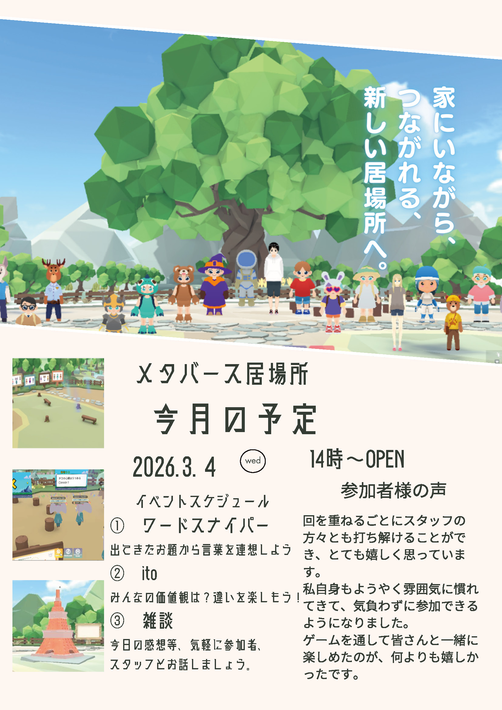 「メタバース居場所」3月開催について